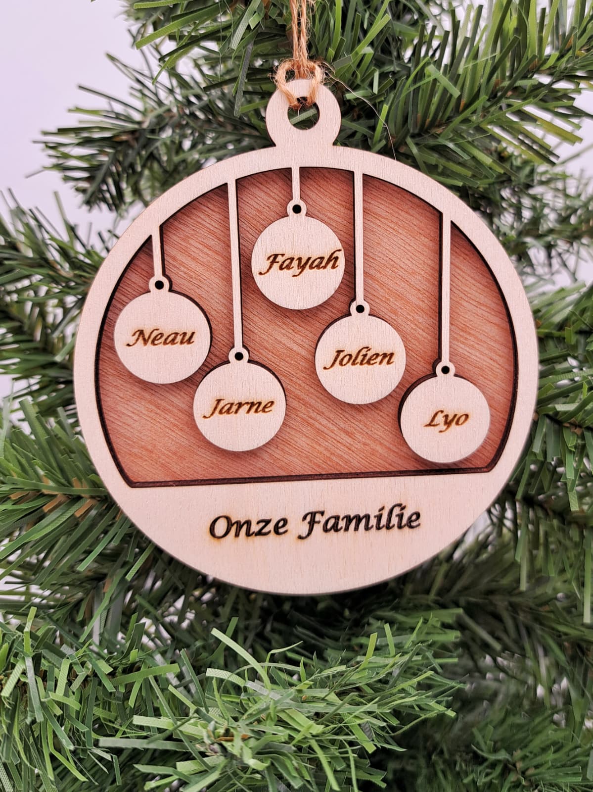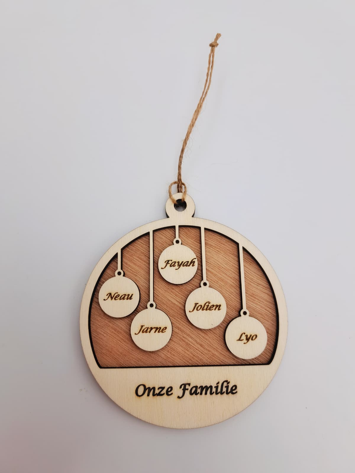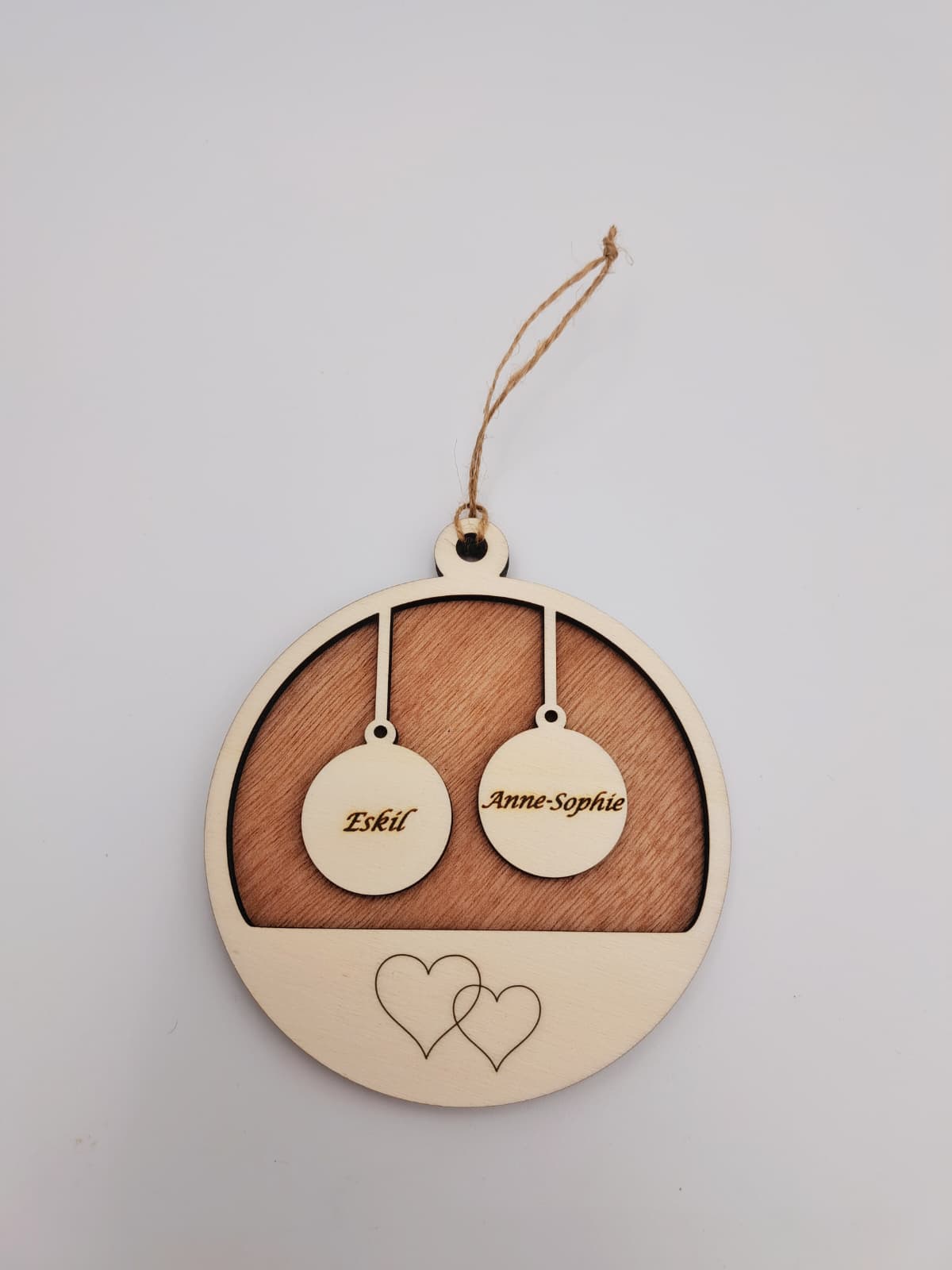 Houten kerstbal met 2 lagen en gegraveerde namen