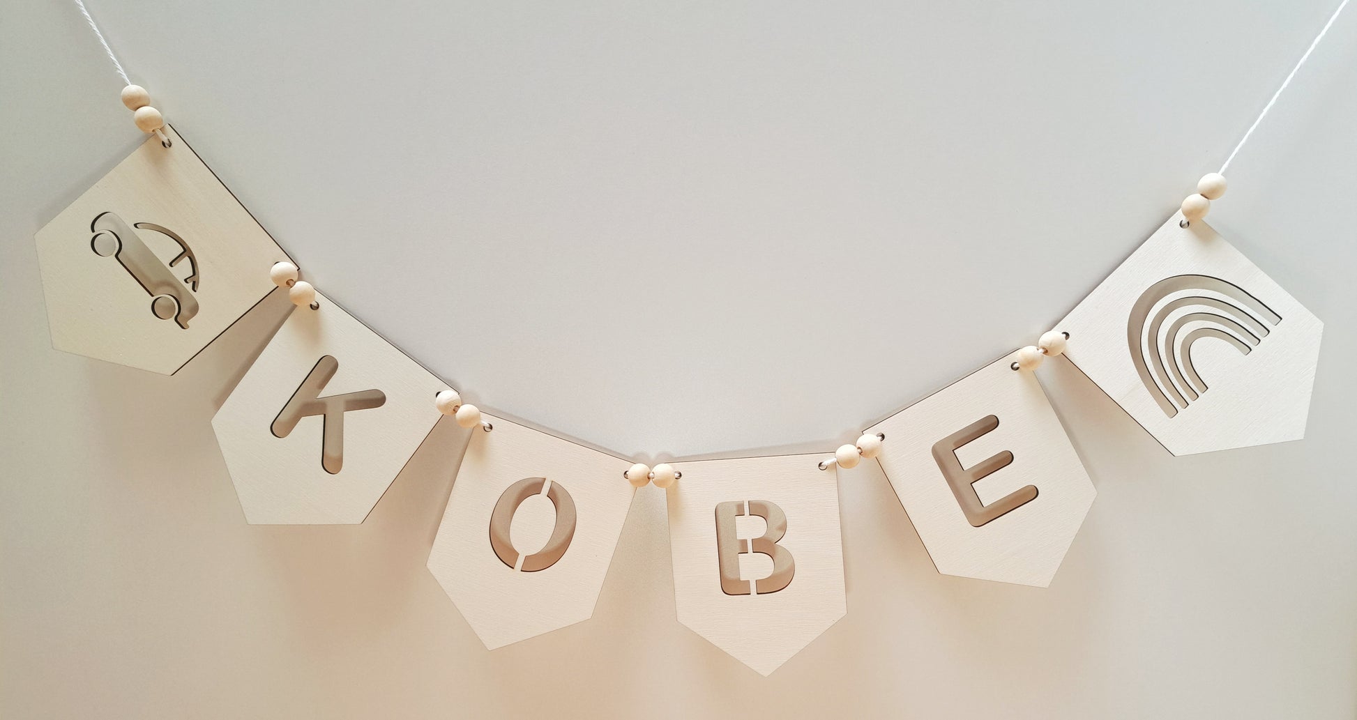 Deze houten naamslinger is niet alleen een leuke decoratie, maar ook een geweldig cadeau voor speciale gelegenheden. Hang hem op in de kinderkamer of gebruik hem om elke viering op te vrolijken!