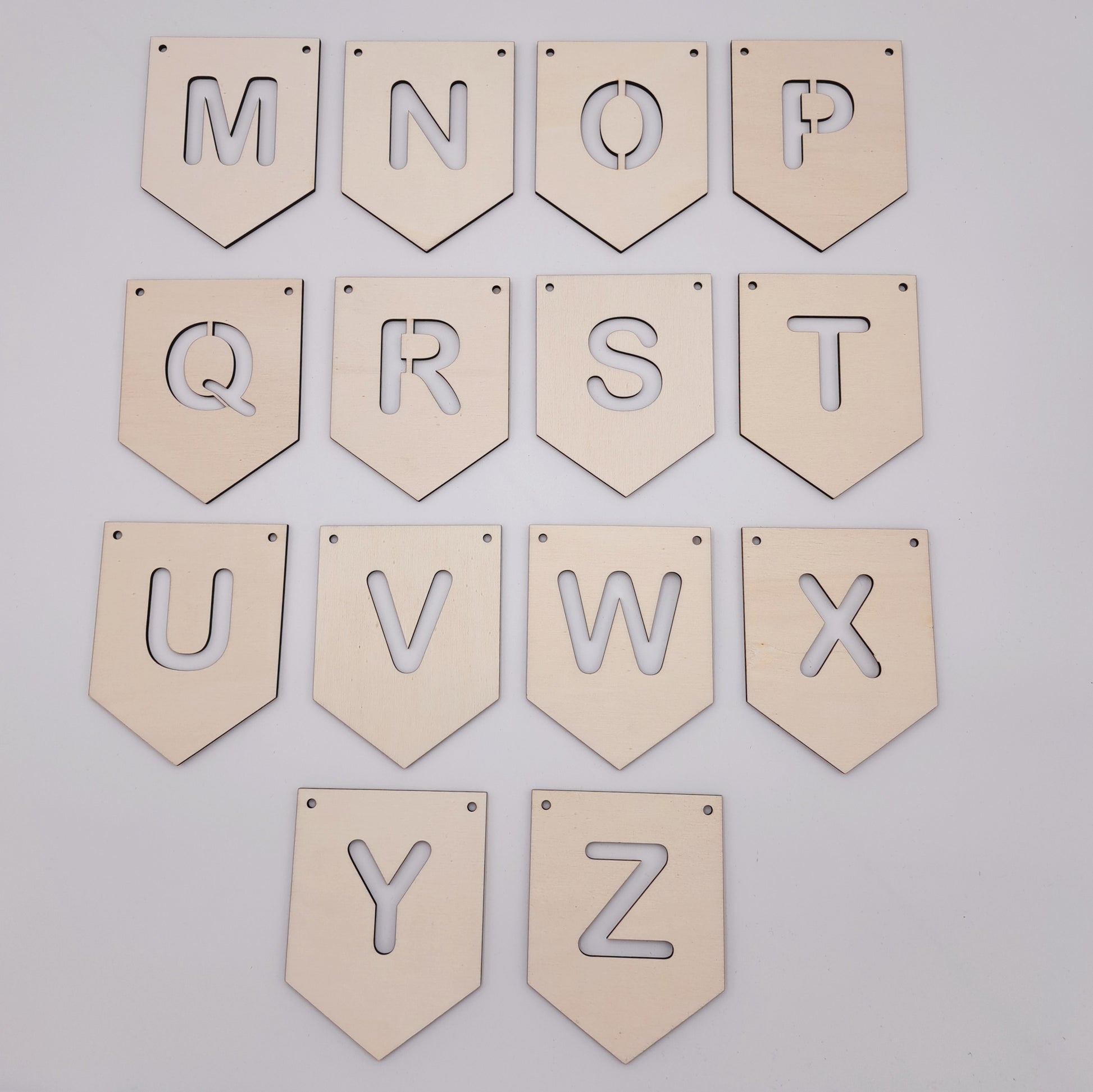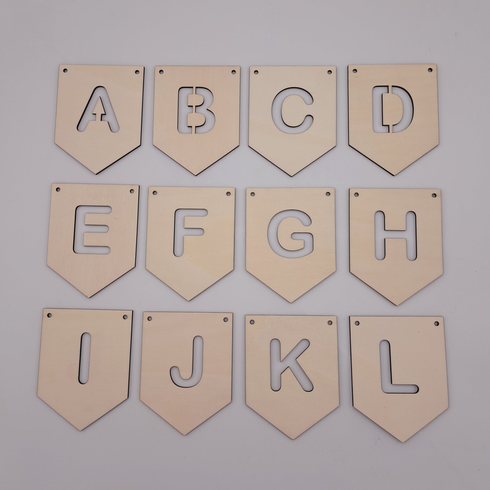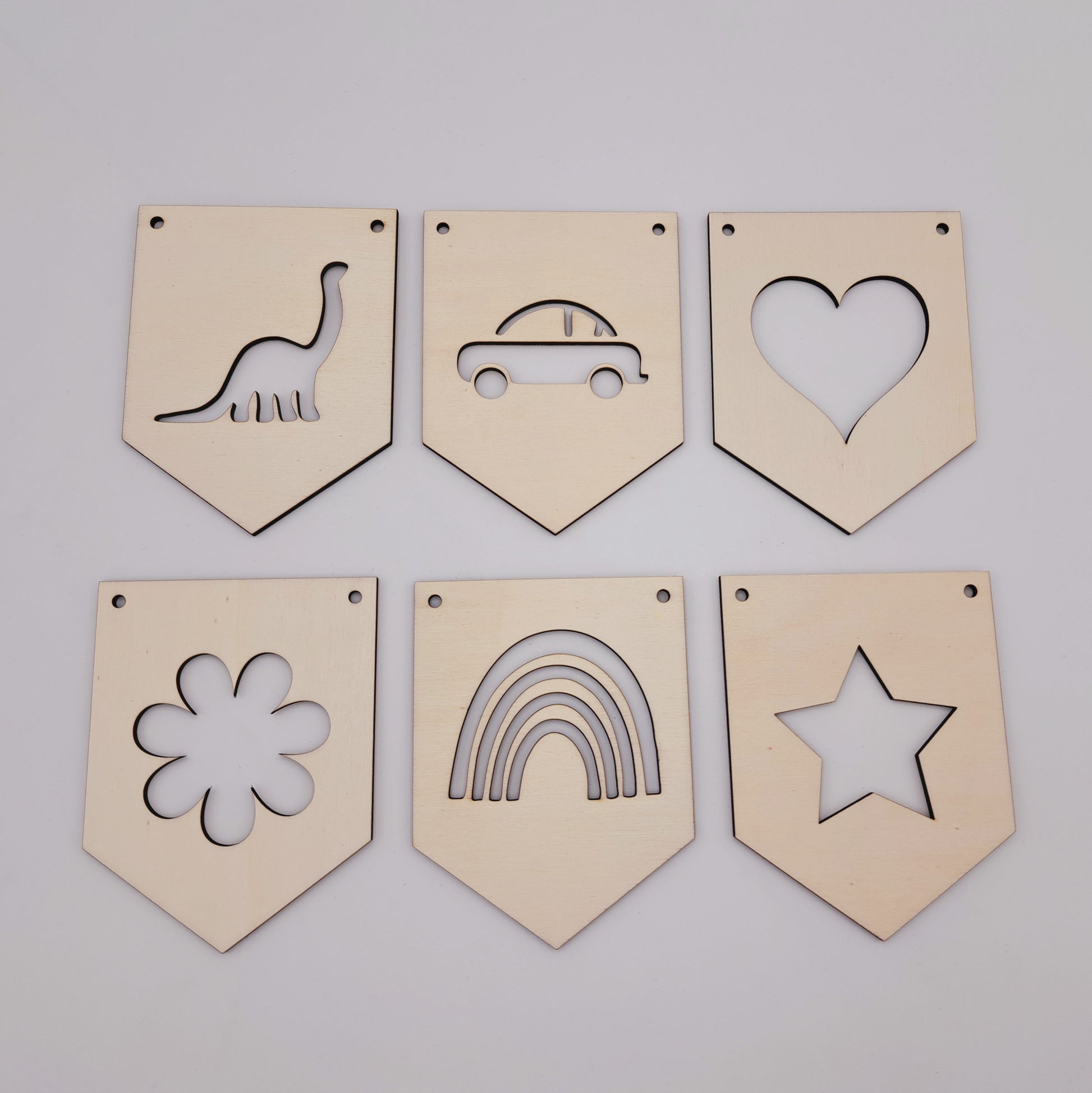 De vlaggetjes zijn 10 cm breed en 13 cm hoog en bevatten uitgesneden letters van ongeveer 5,5 cm hoog, zodat je de naam van je kleintje of een speciale boodschap kunt creëren. Ideaal voor babykamers, verjaardagsfeestjes of babyborrels.